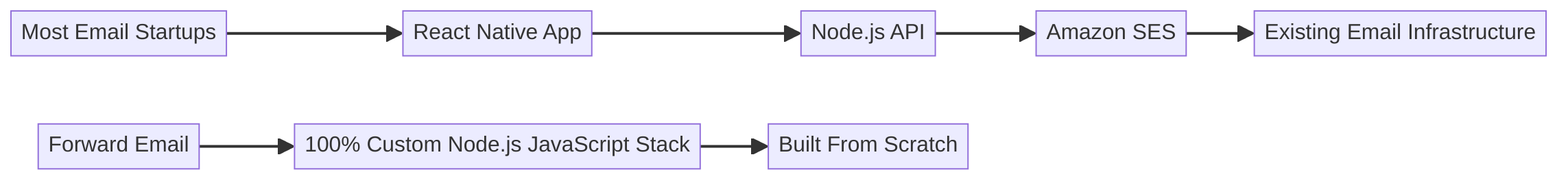 في حين استثمرت العديد من شركات البريد الإلكتروني الناشئة ملايين الدولارات في حل المشكلات المتصورة، فقد ركزنا في Forward Email على بناء بنية تحتية موثوقة للبريد الإلكتروني من الصفر منذ عام 2017. يستكشف هذا التحليل الأنماط الكامنة وراء نتائج شركات البريد الإلكتروني الناشئة والتحديات الأساسية للبنية التحتية للبريد الإلكتروني.