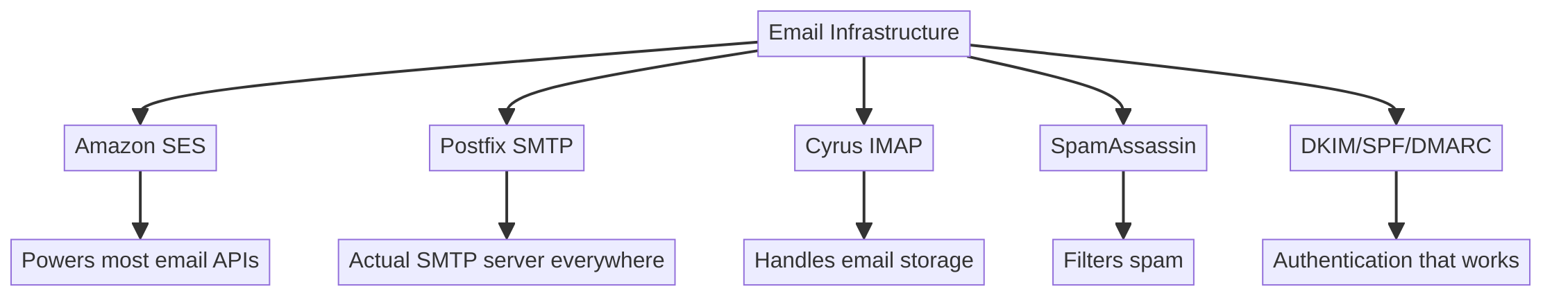 الحقيقة الخفية: كل شركة بريد إلكتروني ناشئة تبني واجهة مستخدم بناءً على البنية التحتية الحالية. إنها لا تبني خوادم بريد إلكتروني فعلية، بل تطبيقات تتصل ببنية بريد إلكتروني حقيقية.
