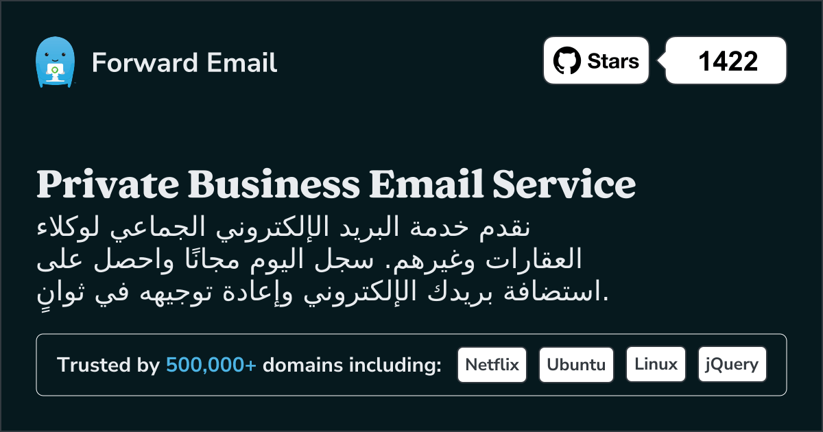 نقدم خدمة البريد الإلكتروني الجماعي لوكلاء العقارات وغيرهم. سجل اليوم مجانًا واحصل على استضافة بريدك الإلكتروني وإعادة توجيهه في ثوانٍ.