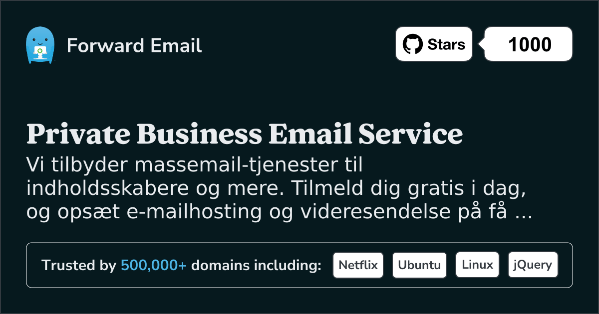 Vi tilbyder massemail-tjenester til indholdsskabere og mere. Tilmeld dig gratis i dag, og opsæt e-mailhosting og videresendelse på få sekunder.