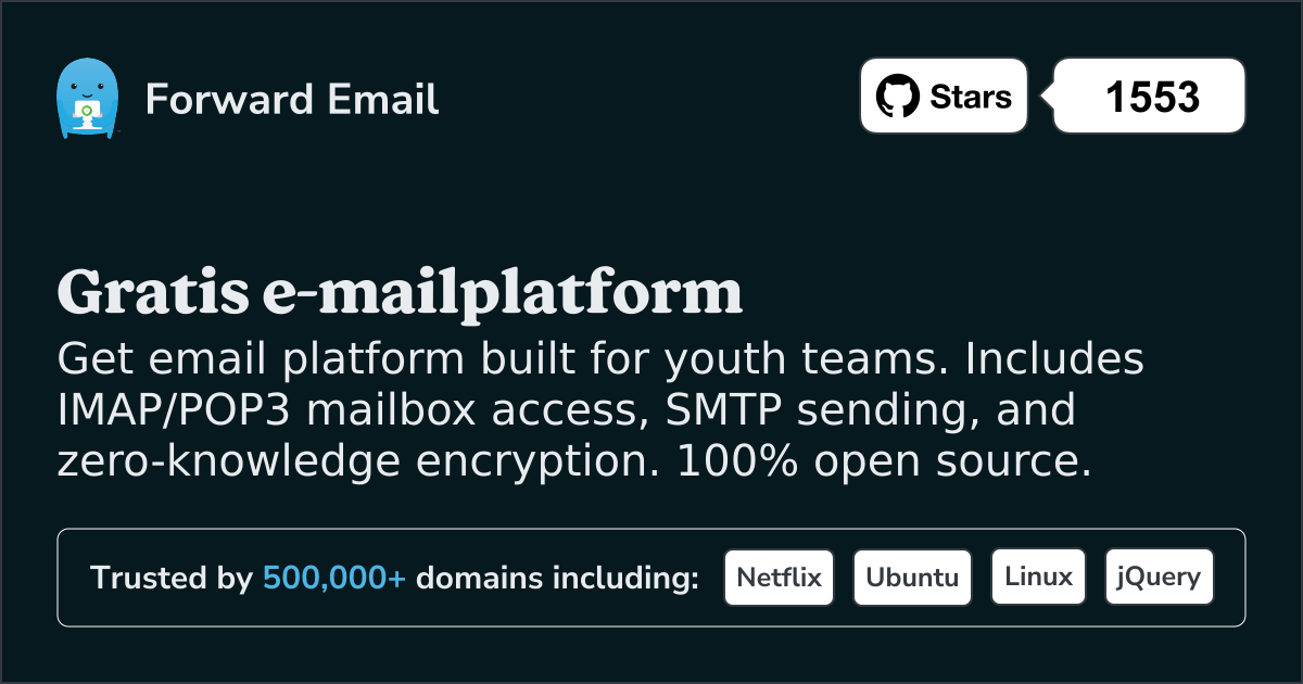 Get email platform built for youth teams. Includes IMAP/POP3 mailbox access, SMTP sending, and zero-knowledge encryption. 100% open source.