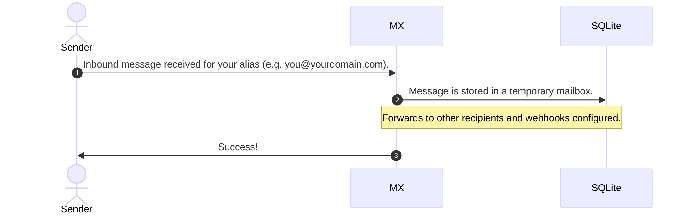 When new mail is received for you from a sender, our mail exchange servers write to an individual, temporary, and encrypted mailbox for you.