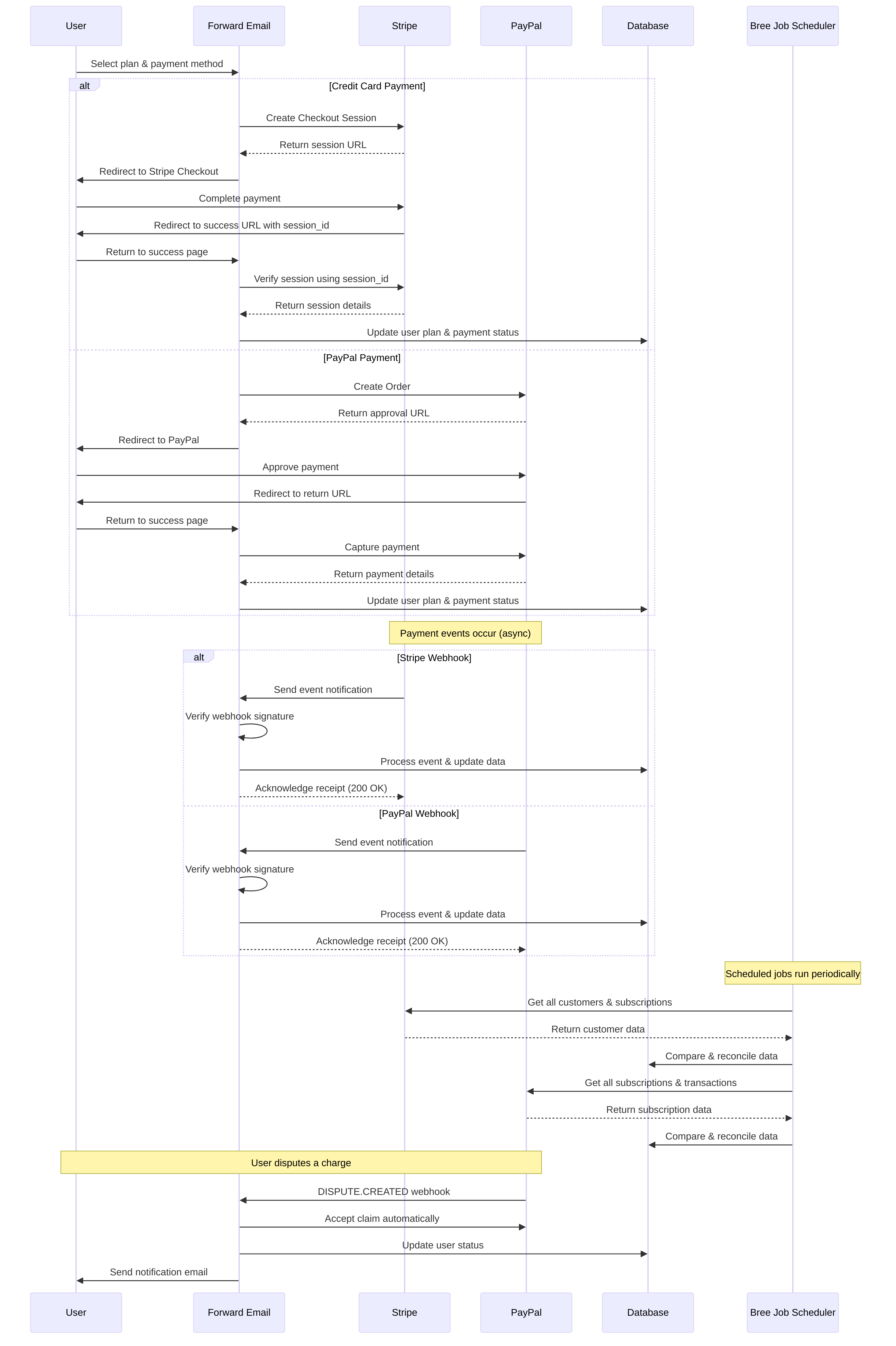 En Forward Email, siempre hemos priorizado la creación de sistemas fiables, precisos y fáciles de usar. Al implementar nuestro sistema de procesamiento de pagos, sabíamos que necesitábamos una solución que pudiera gestionar múltiples procesadores de pago y, al mismo tiempo, mantener una consistencia perfecta de los datos. Esta entrada de blog detalla cómo nuestro equipo de desarrollo integró Stripe y PayPal mediante un enfoque trifecta que garantiza una precisión 1:1 en tiempo real en todo nuestro sistema.