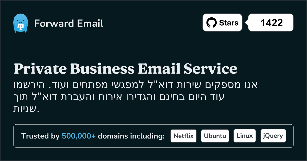 אנו מספקים שירות דוא"ל למפגשי מפתחים ועוד. הירשמו עוד היום בחינם והגדירו אירוח והעברת דוא"ל תוך שניות.