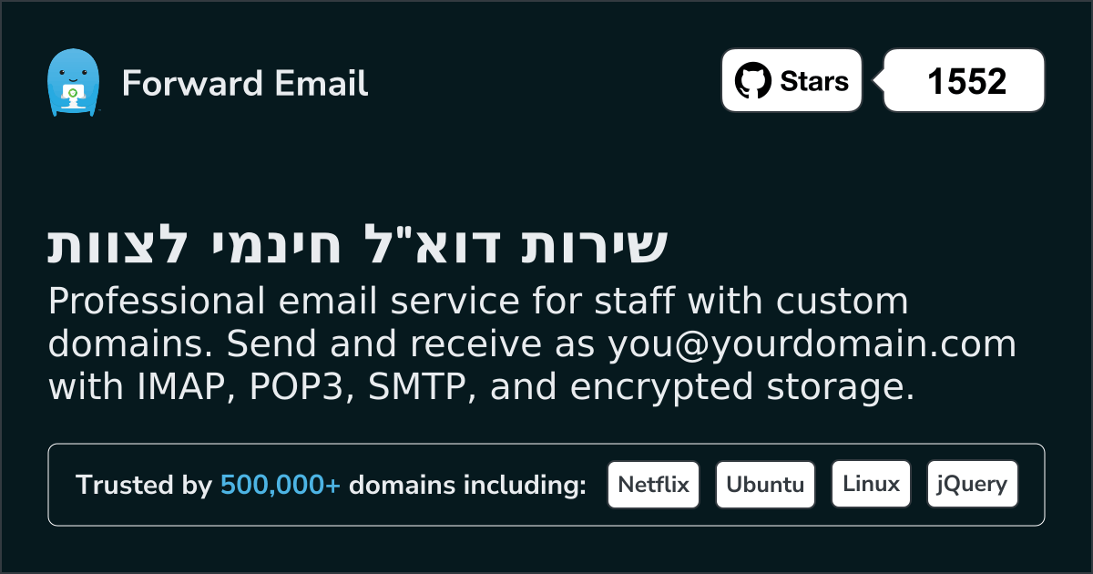 העברת דוא"ל בחינם ואחסון דומיין מותאם אישית שעובד בכל מקום.