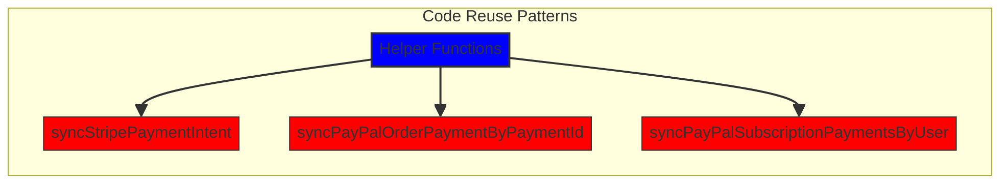 共有ヘルパー関数: 支払いの同期やメールの送信などの一般的なタスク用に再利用可能なヘルパー関数を作成しました。