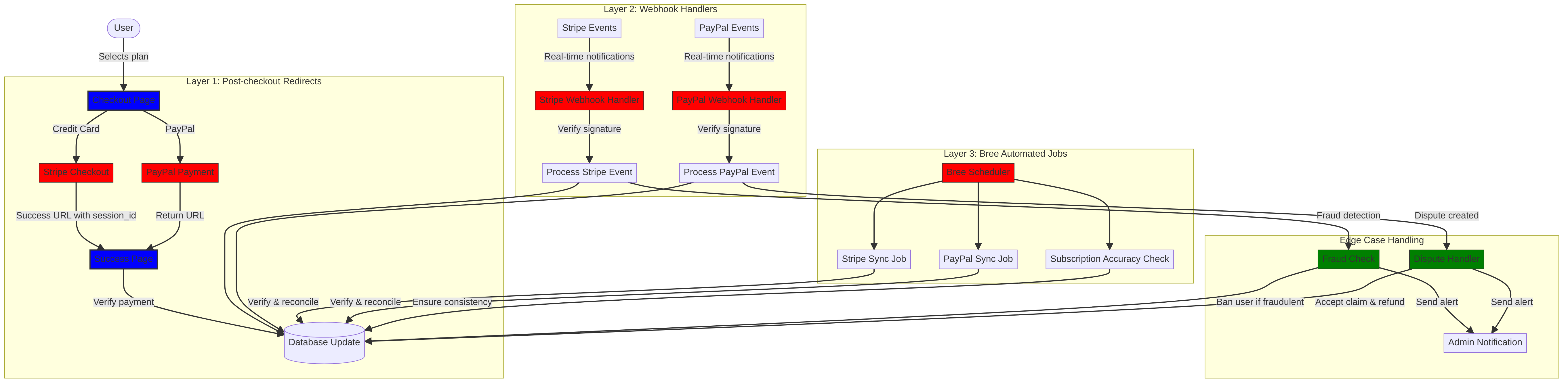 StripeとPayPalはどちらも、決済イベントに関するリアルタイム通知を送信するWebhookシステムを提供しています。私たちは、これらの通知の信頼性を検証し、それに応じて処理する堅牢なWebhookハンドラーを実装しました。