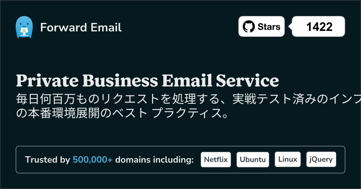- [最高のメール転送サービス]](https://forwardemail.net/blog/docs/best-email-forwarding-service) - パフォーマンス比較に記載)