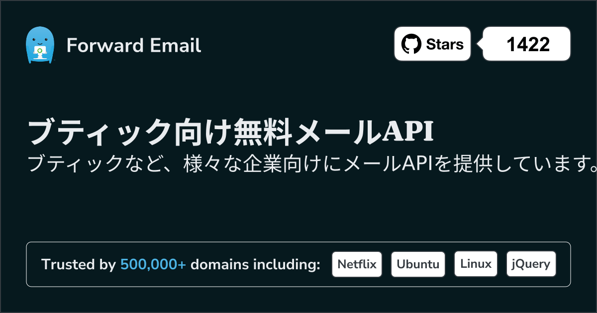 ブティックなど、様々な企業向けにメールAPIを提供しています。今すぐ無料で登録して、メールホスティングと転送を数秒で設定しましょう。