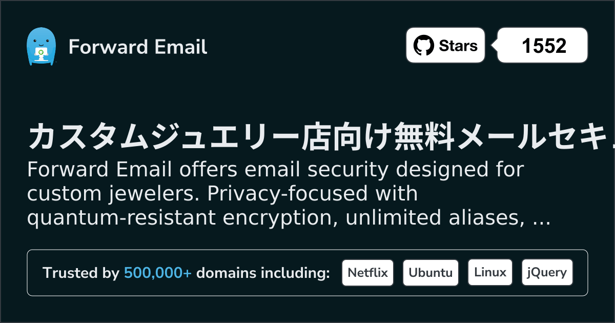 Forward Email offers email security designed for custom jewelers. Privacy-focused with quantum-resistant encryption, unlimited aliases, and full email hosting from $3/mo.
