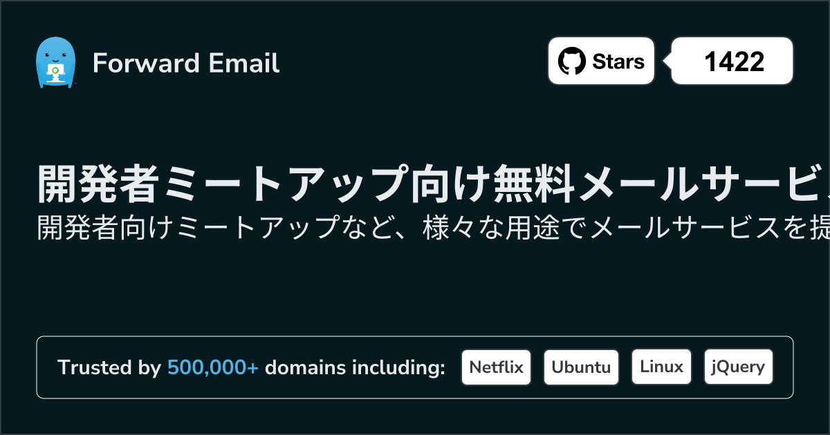 開発者向けミートアップなど、様々な用途でメールサービスを提供しています。今すぐ無料で登録して、メールホスティングと転送を数秒で設定しましょう。