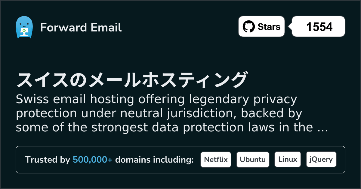 Congrats for fully launching Forward Email – a forwarding service for email that doesn't keep logs or store emails, and which works with ARC to ensure signed forwards don't trip email filters 👏. I'm a happy user! ❤️