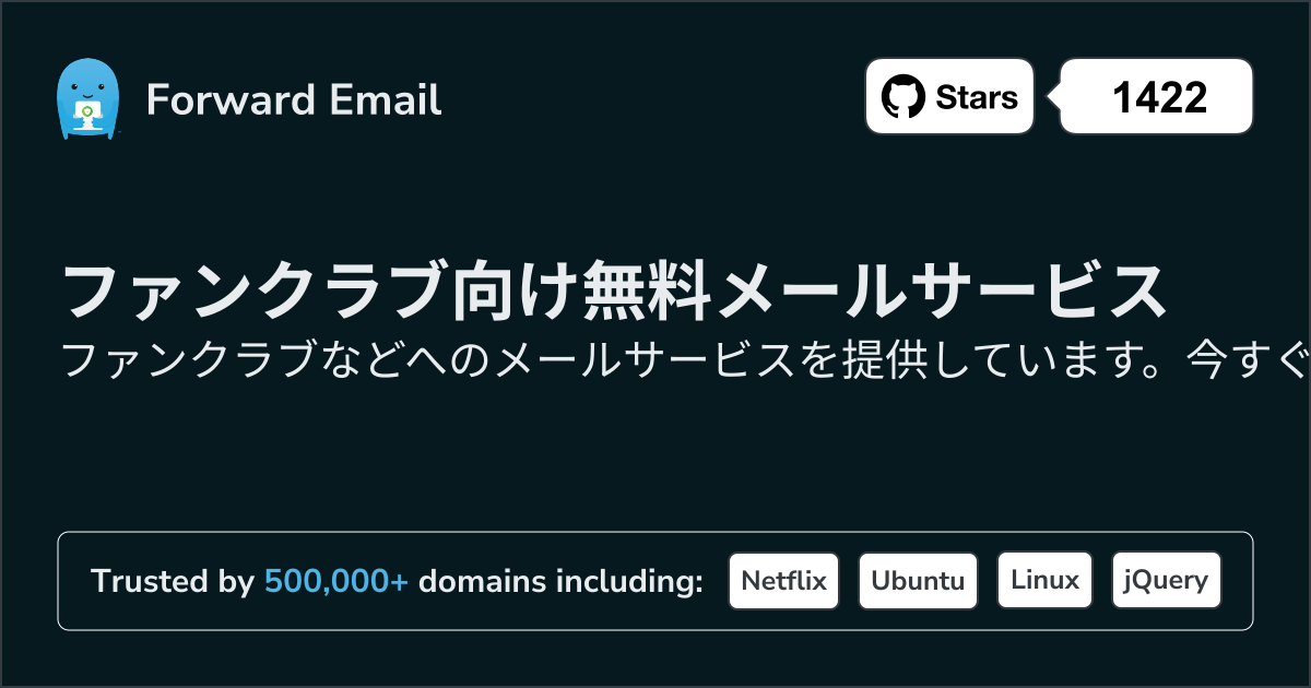 ファンクラブなどへのメールサービスを提供しています。今すぐ無料でご登録いただくと、メールホスティングと転送が数秒で設定できます。