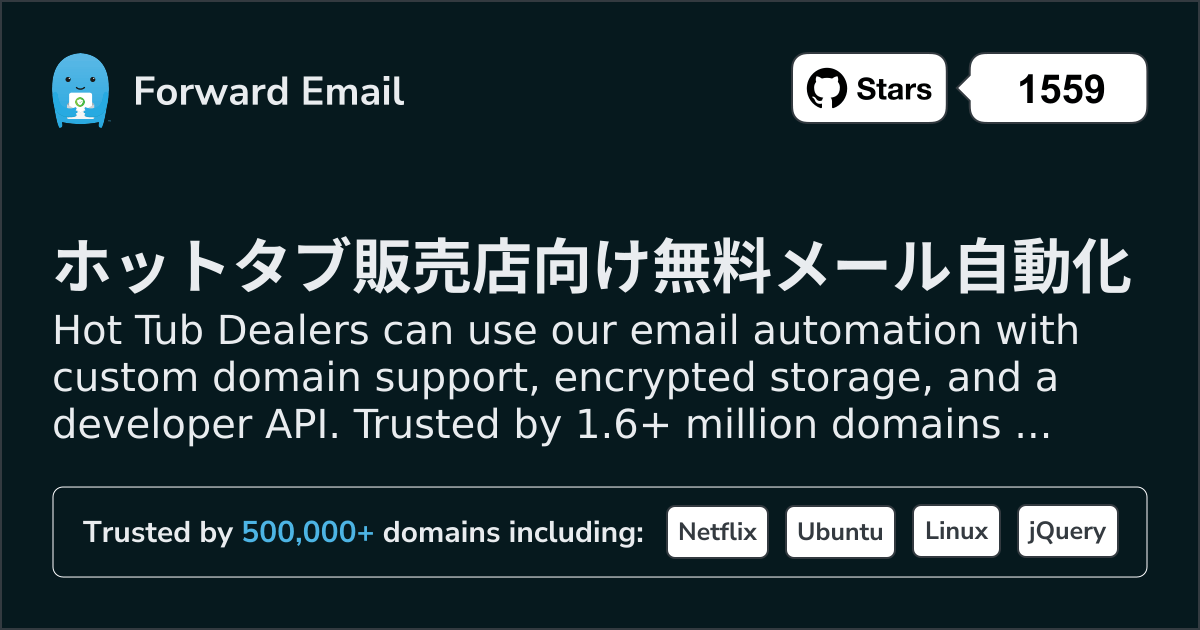 Hot Tub Dealers can use our email automation with custom domain support, encrypted storage, and a developer API. Trusted by 1.6+ million domains worldwide. Free to start.