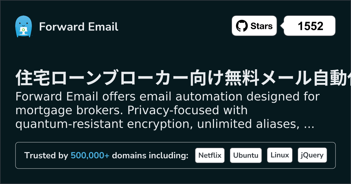 Forward Email offers email automation designed for mortgage brokers. Privacy-focused with quantum-resistant encryption, unlimited aliases, and full email hosting from $3/mo.