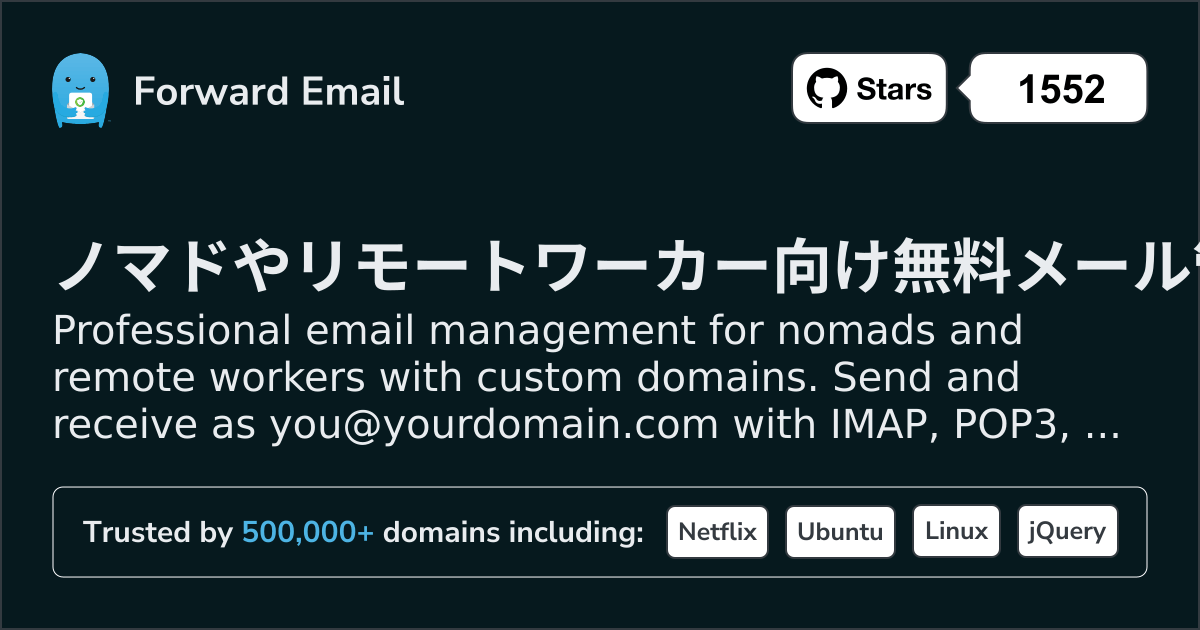 Congrats for fully launching Forward Email – a forwarding service for email that doesn't keep logs or store emails, and which works with ARC to ensure signed forwards don't trip email filters 👏. I'm a happy user! ❤️