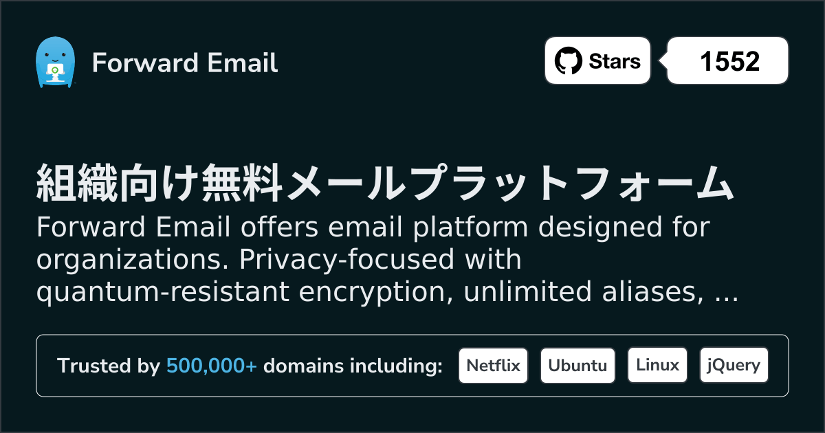 Forward Email offers email platform designed for organizations. Privacy-focused with quantum-resistant encryption, unlimited aliases, and full email hosting from $3/mo.