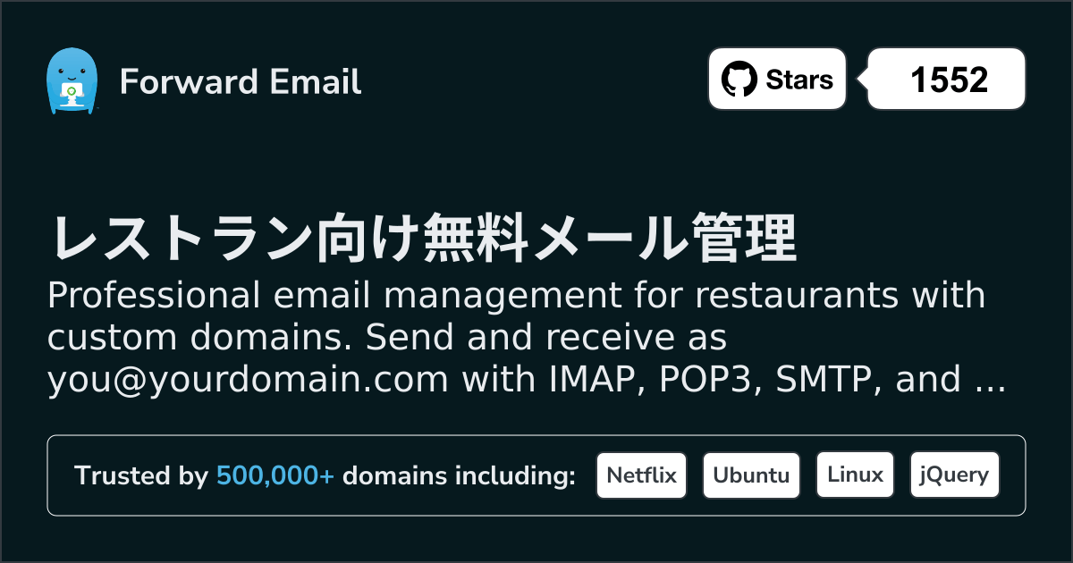 Congrats for fully launching Forward Email – a forwarding service for email that doesn't keep logs or store emails, and which works with ARC to ensure signed forwards don't trip email filters 👏. I'm a happy user! ❤️