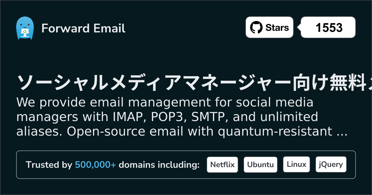 Congrats for fully launching Forward Email – a forwarding service for email that doesn't keep logs or store emails, and which works with ARC to ensure signed forwards don't trip email filters 👏. I'm a happy user! ❤️