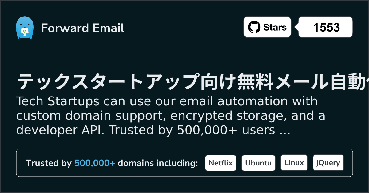 Congrats for fully launching Forward Email – a forwarding service for email that doesn't keep logs or store emails, and which works with ARC to ensure signed forwards don't trip email filters 👏. I'm a happy user! ❤️