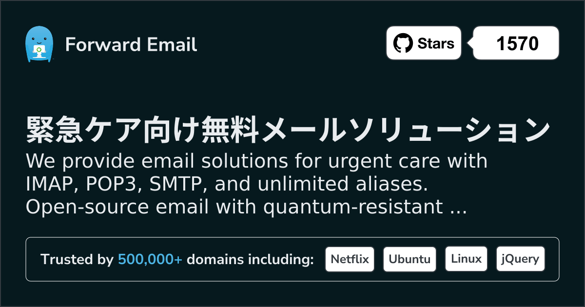 Congrats for fully launching Forward Email – a forwarding service for email that doesn't keep logs or store emails, and which works with ARC to ensure signed forwards don't trip email filters 👏. I'm a happy user! ❤️
