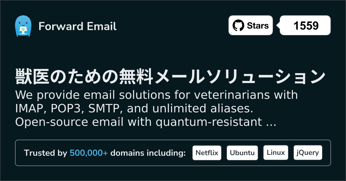 Congrats for fully launching Forward Email – a forwarding service for email that doesn't keep logs or store emails, and which works with ARC to ensure signed forwards don't trip email filters 👏. I'm a happy user! ❤️