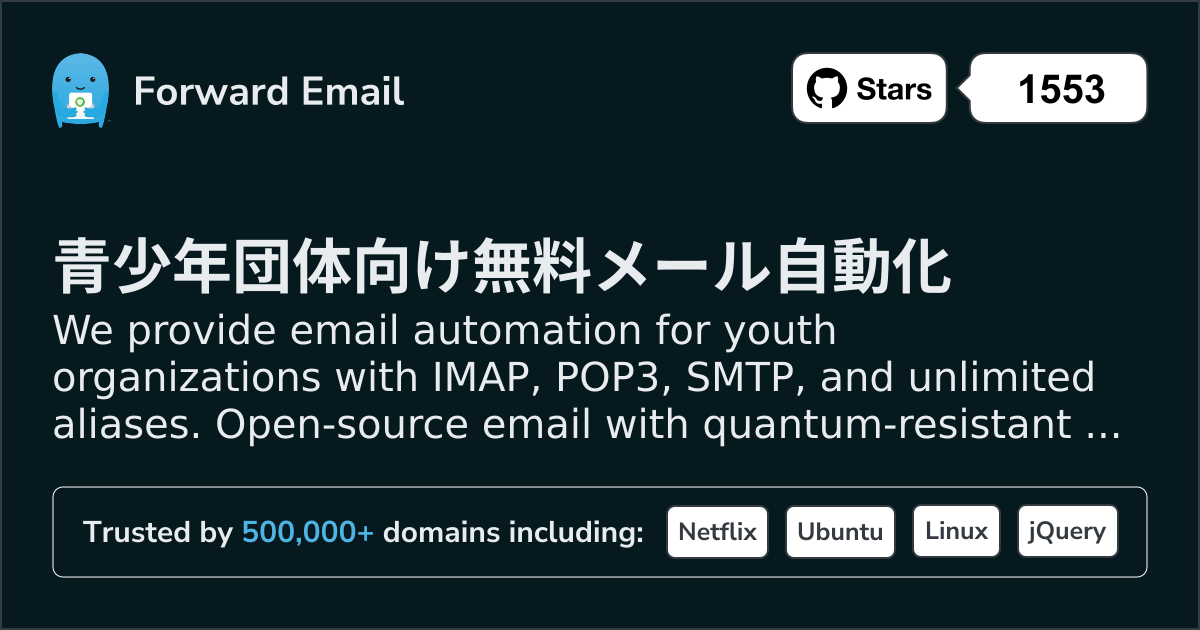 We provide email automation for youth organizations with IMAP, POP3, SMTP, and unlimited aliases. Open-source email with quantum-resistant encryption. Setup in minutes.