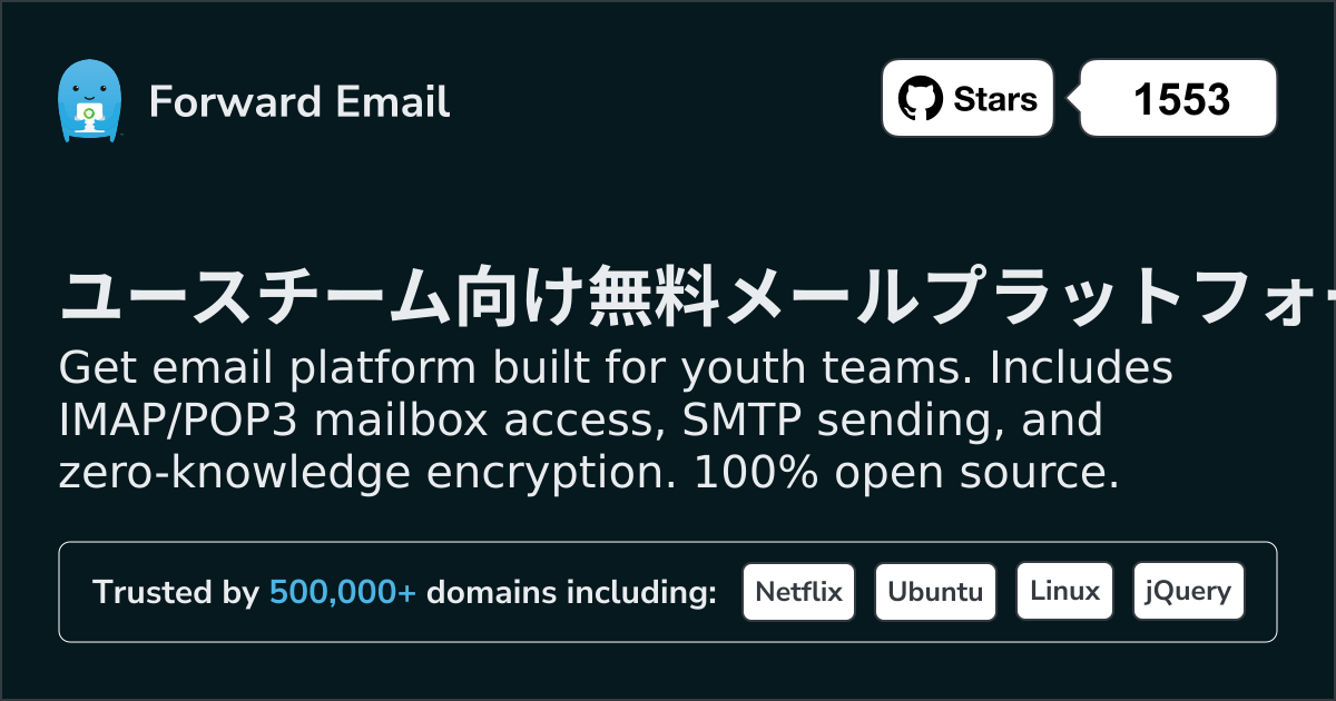 Get email platform built for youth teams. Includes IMAP/POP3 mailbox access, SMTP sending, and zero-knowledge encryption. 100% open source.