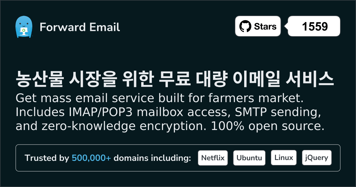 Get mass email service built for farmers market. Includes IMAP/POP3 mailbox access, SMTP sending, and zero-knowledge encryption. 100% open source.