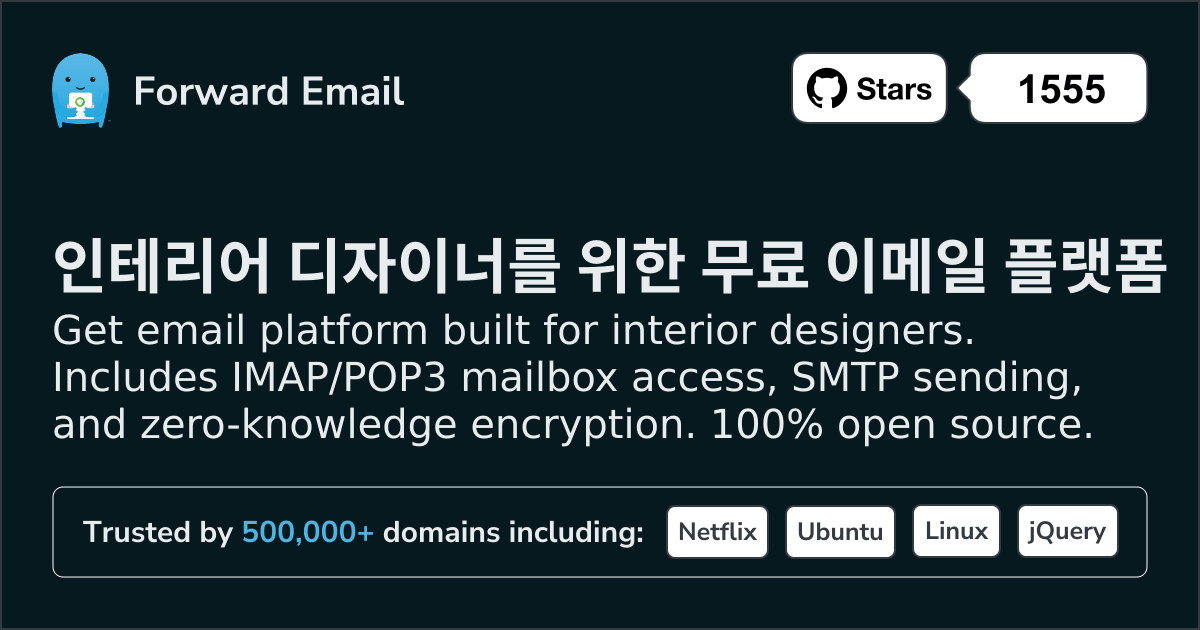 Get email platform built for interior designers. Includes IMAP/POP3 mailbox access, SMTP sending, and zero-knowledge encryption. 100% open source.