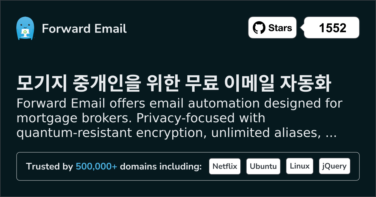 Forward Email offers email automation designed for mortgage brokers. Privacy-focused with quantum-resistant encryption, unlimited aliases, and full email hosting from $3/mo.