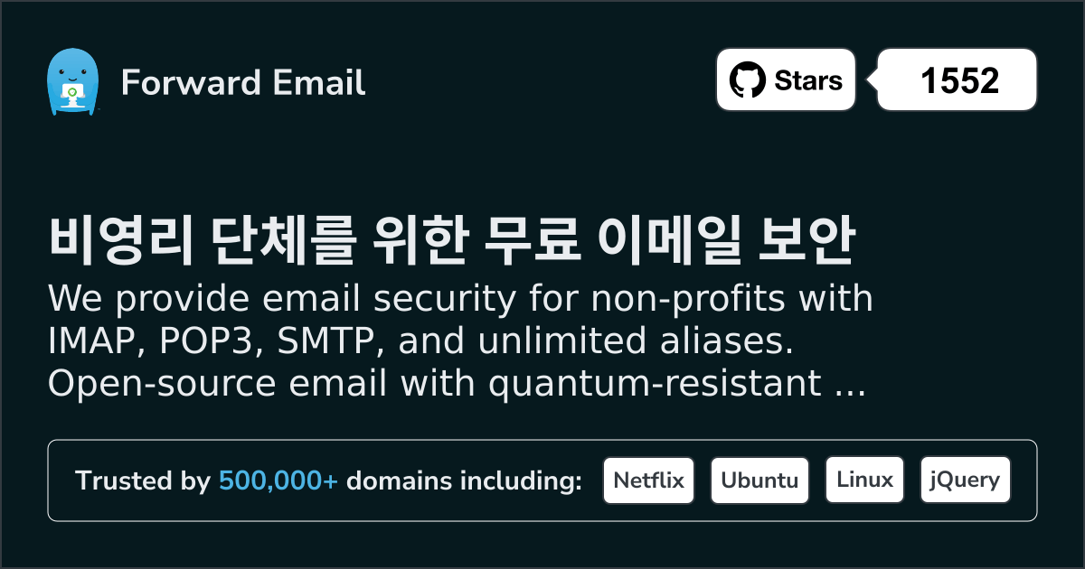 We provide email security for non-profits with IMAP, POP3, SMTP, and unlimited aliases. Open-source email with quantum-resistant encryption. Setup in minutes.