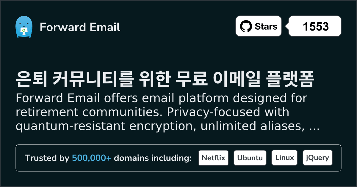 Forward Email offers email platform designed for retirement communities. Privacy-focused with quantum-resistant encryption, unlimited aliases, and full email hosting from $3/mo.