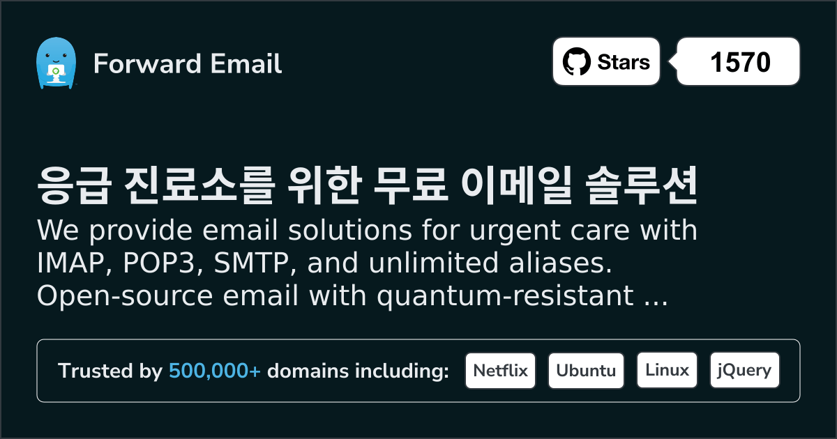 We provide email solutions for urgent care with IMAP, POP3, SMTP, and unlimited aliases. Open-source email with quantum-resistant encryption. Setup in minutes.