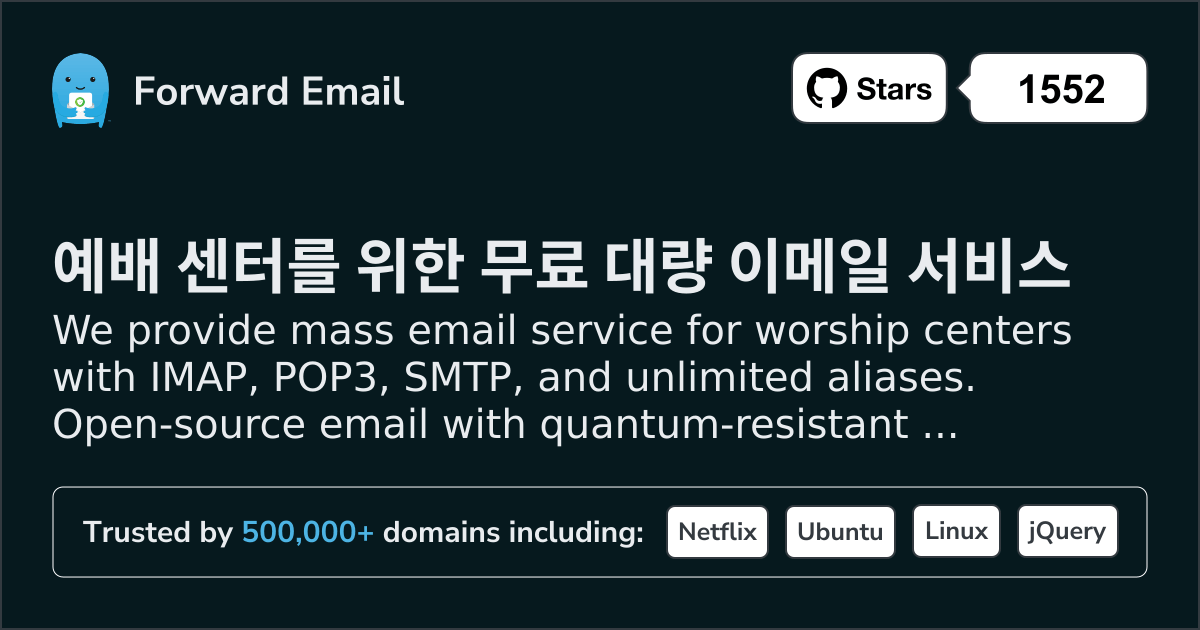 We provide mass email service for worship centers with IMAP, POP3, SMTP, and unlimited aliases. Open-source email with quantum-resistant encryption. Setup in minutes.