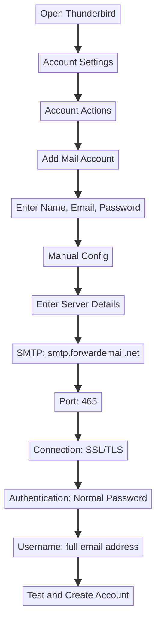 - Uitgaande server (SMTP): smtp.forwardemail.net, Poort: 465, SSL/TLS