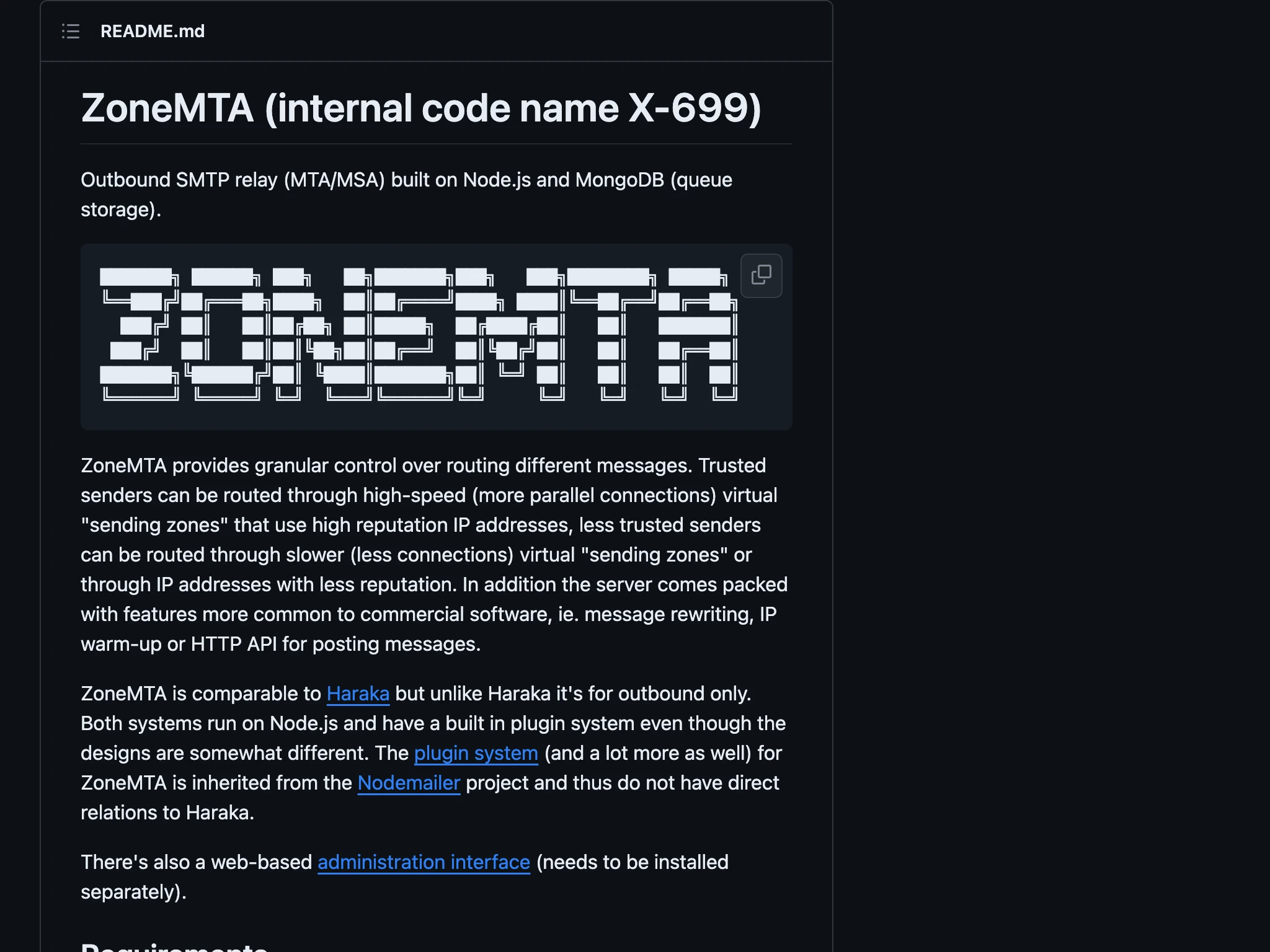 | Haraka | Um servidor SMTP moderno, de alto desempenho e flexível. | Captura de tela | Não | Sim | Não | Não | Site | Wikipédia |