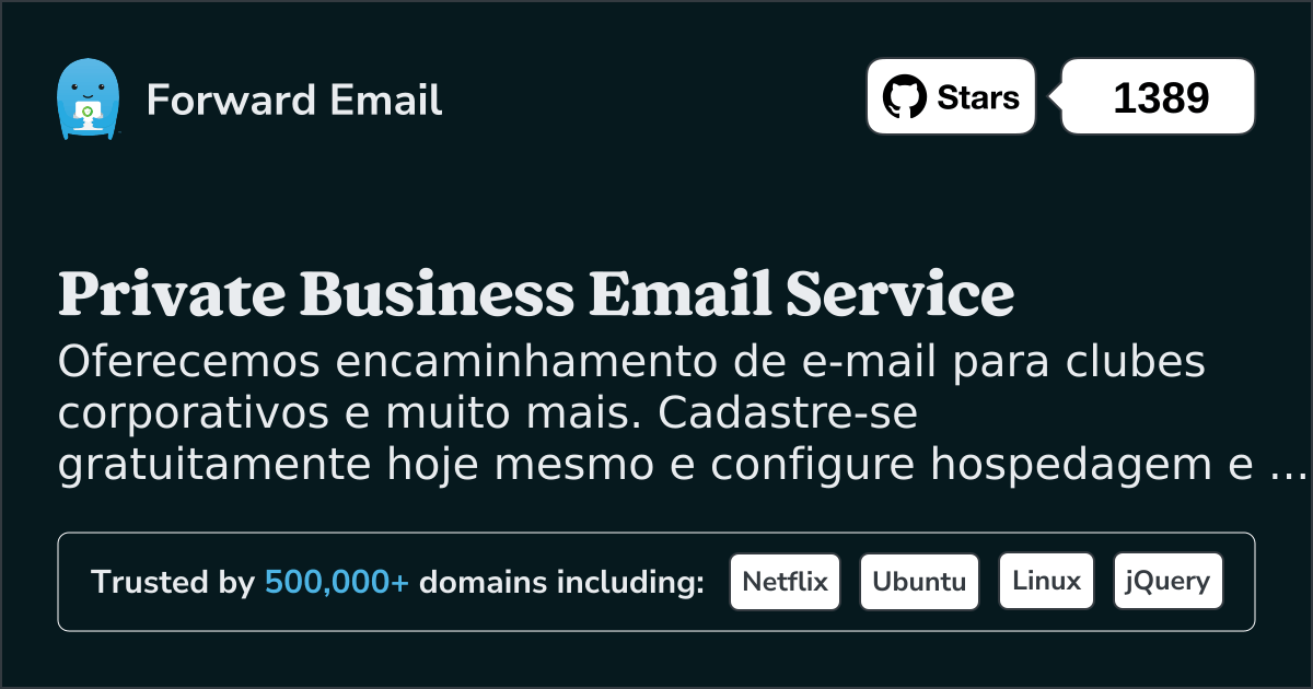 Encaminhamento de e-mail gratuito e hospedagem de domínio personalizado que funciona em qualquer lugar.
