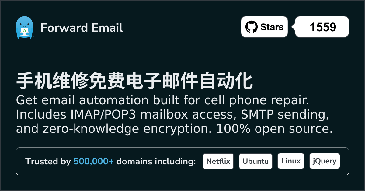 Get email automation built for cell phone repair. Includes IMAP/POP3 mailbox access, SMTP sending, and zero-knowledge encryption. 100% open source.