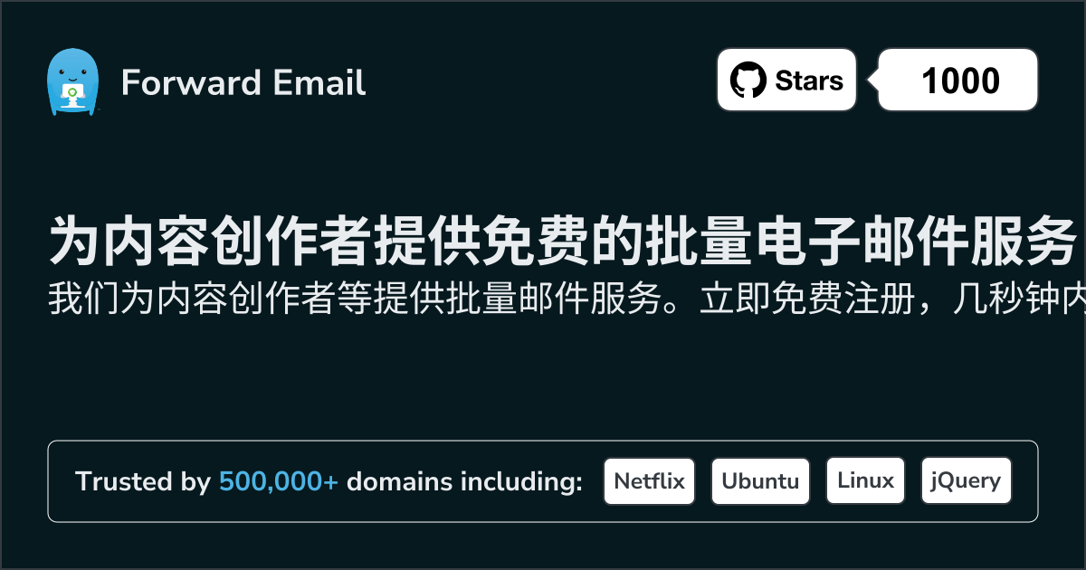我们为内容创作者等提供批量邮件服务。立即免费注册,几秒钟内即可设置邮件托管和转发。