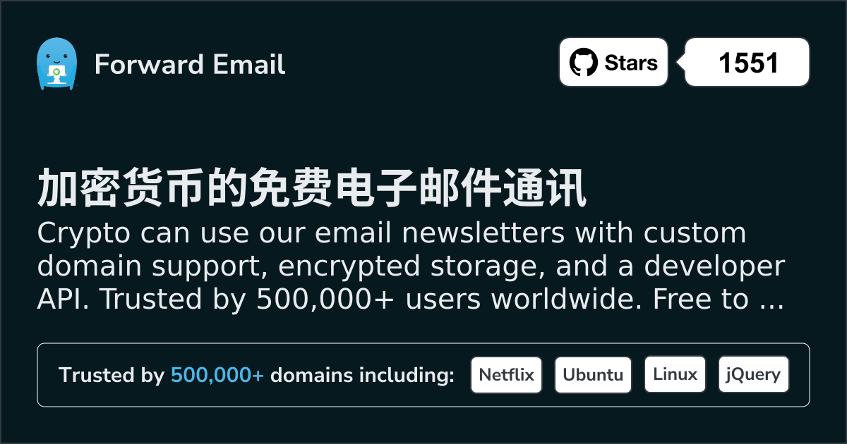 Congrats for fully launching Forward Email – a forwarding service for email that doesn't keep logs or store emails, and which works with ARC to ensure signed forwards don't trip email filters 👏. I'm a happy user! ❤️