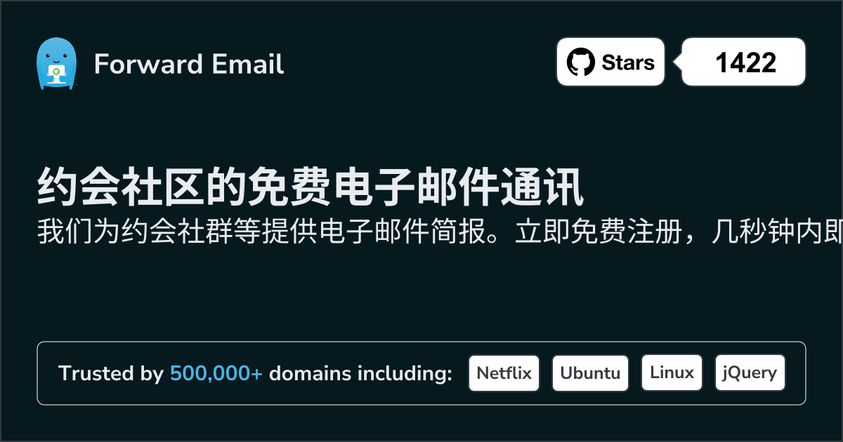 我们为约会社群等提供电子邮件简报。立即免费注册,几秒钟内即可设置电子邮件托管和转发。