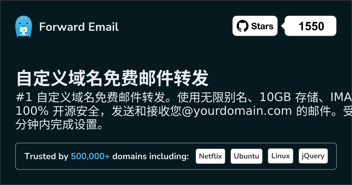 CNAME | autoconfig | autoconfig.forwardemail.net | 邮件客户端自动发现(Thunderbird、GNOME、KDE) |
