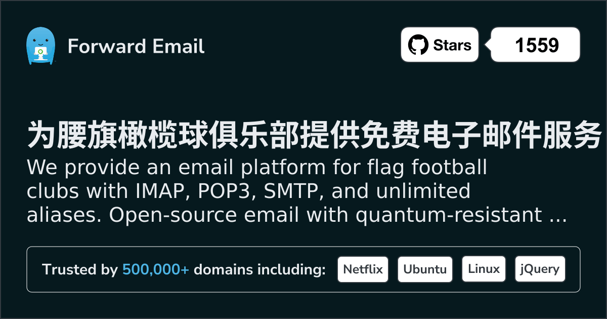 We provide an email platform for flag football clubs with IMAP, POP3, SMTP, and unlimited aliases. Open-source email with quantum-resistant encryption. Setup in minutes.