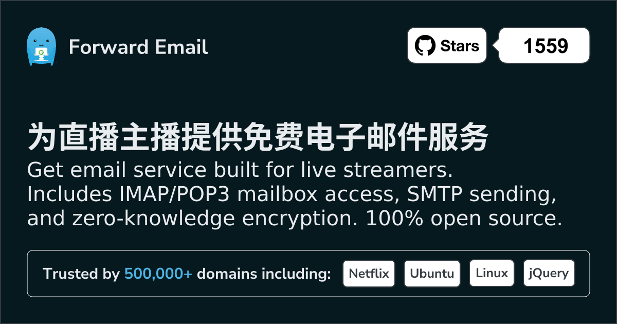 Congrats for fully launching Forward Email – a forwarding service for email that doesn't keep logs or store emails, and which works with ARC to ensure signed forwards don't trip email filters 👏. I'm a happy user! ❤️
