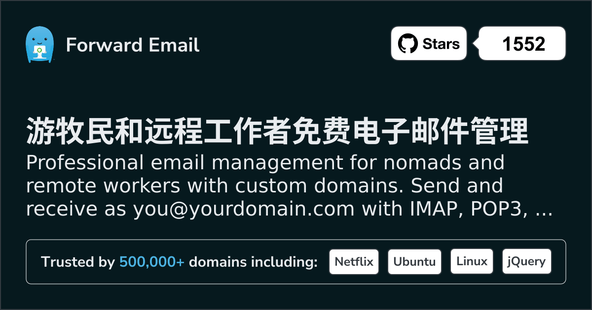 Congrats for fully launching Forward Email – a forwarding service for email that doesn't keep logs or store emails, and which works with ARC to ensure signed forwards don't trip email filters 👏. I'm a happy user! ❤️