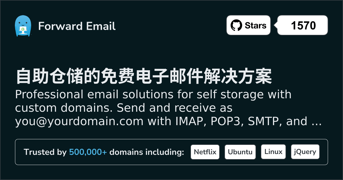 Professional email solutions for self storage with custom domains. Send and receive as you@yourdomain.com with IMAP, POP3, SMTP, and encrypted storage.