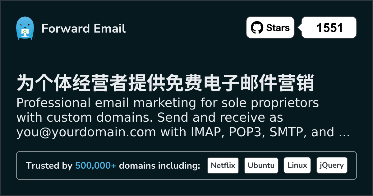 Congrats for fully launching Forward Email – a forwarding service for email that doesn't keep logs or store emails, and which works with ARC to ensure signed forwards don't trip email filters 👏. I'm a happy user! ❤️
