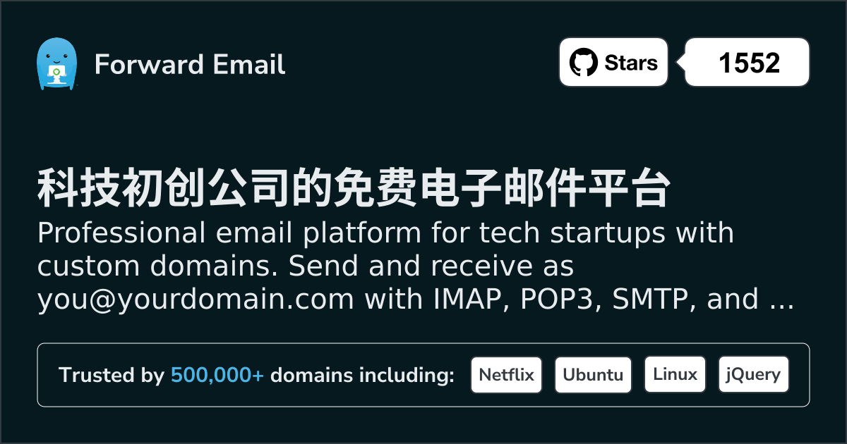 Congrats for fully launching Forward Email – a forwarding service for email that doesn't keep logs or store emails, and which works with ARC to ensure signed forwards don't trip email filters 👏. I'm a happy user! ❤️