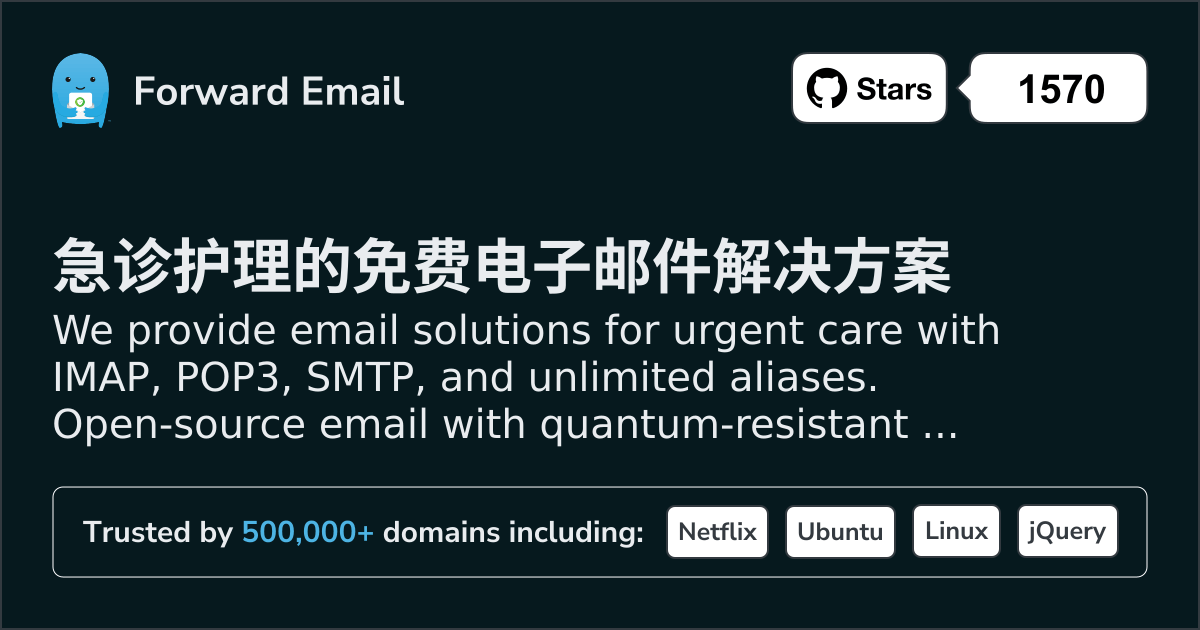 We provide email solutions for urgent care with IMAP, POP3, SMTP, and unlimited aliases. Open-source email with quantum-resistant encryption. Setup in minutes.